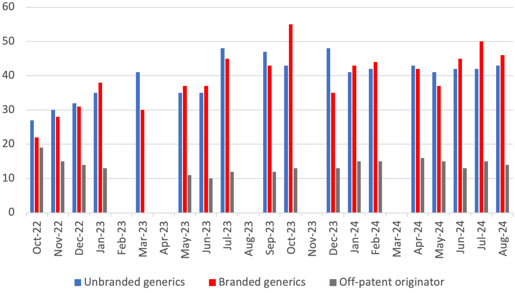 Percentage of branded generics[8]as a proportion of the generic medicines experiencing a supply issue in August 2024