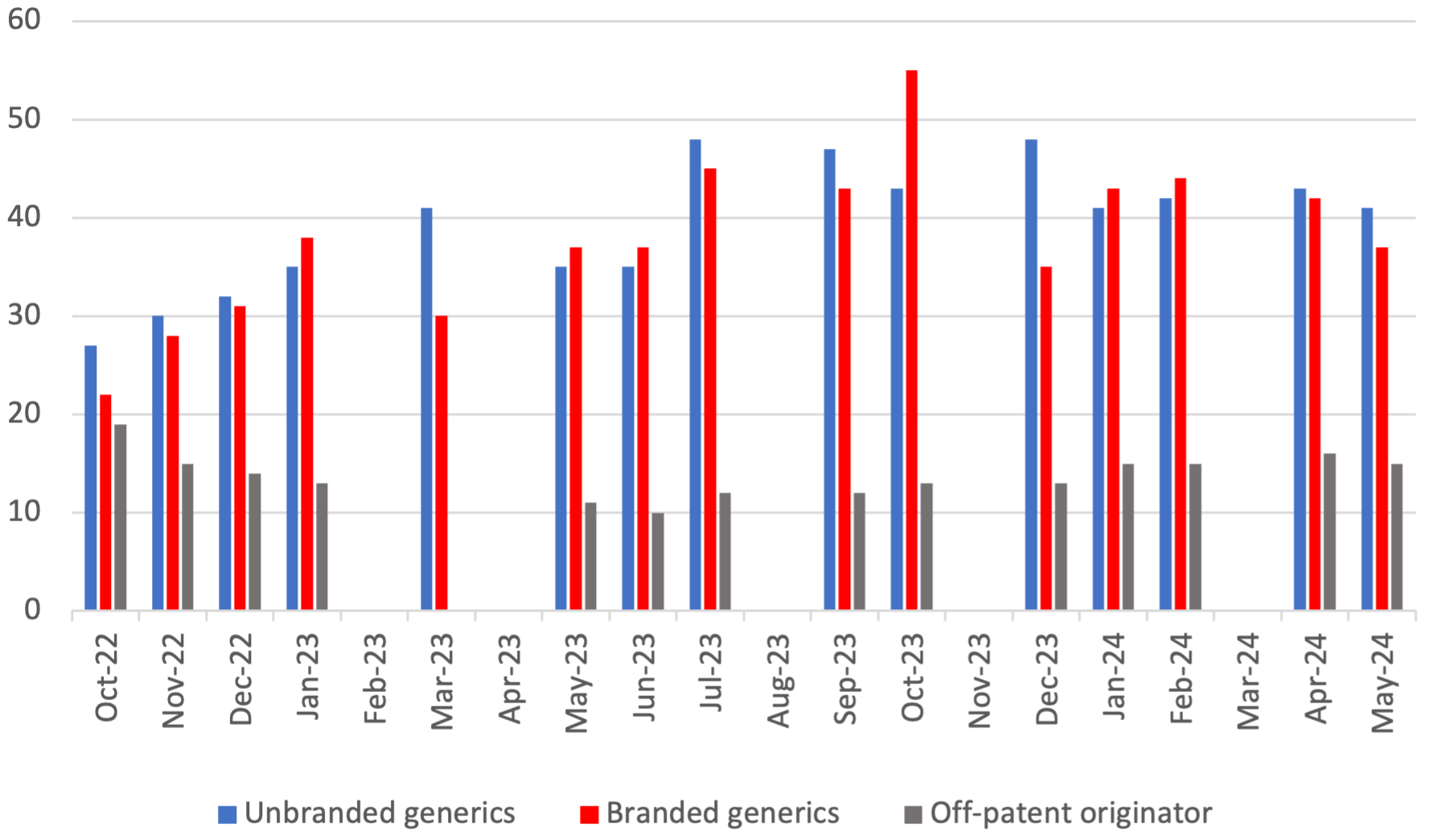 Percentage of branded generics[8]as a proportion of the generic medicines experiencing a supply issue in May 2024