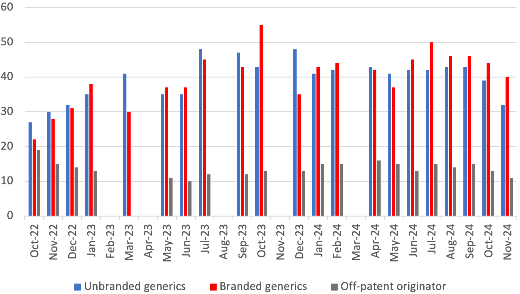 - 2 In this analysis, we define a generic medicine as a medicine that is not patent protected. As such, we include off-patent originator medicines as generic medicines, since they operate in genercised markets. The dashboard is Medicines UK's interpretation of supply issues information issues by the UK Government and NHS. Medicines UK carries out this analysis categorisation on the basis of what is set out in the notes section.