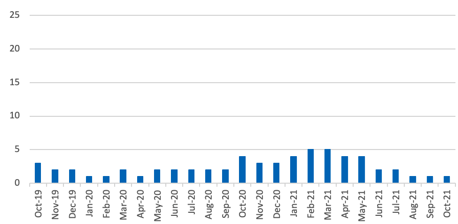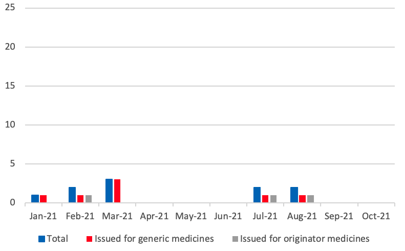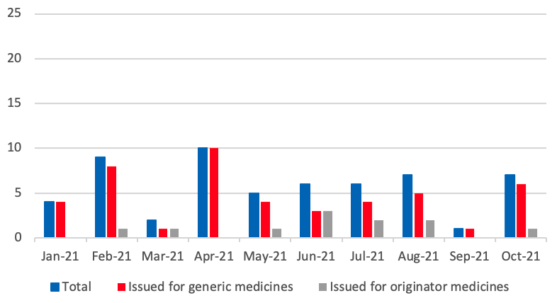 Looking at October 2021, Medicines UK provides a monthly snapshot of the numbers of supply issues affecting generic[1] medicines in England, based on UK Government and NHS data.