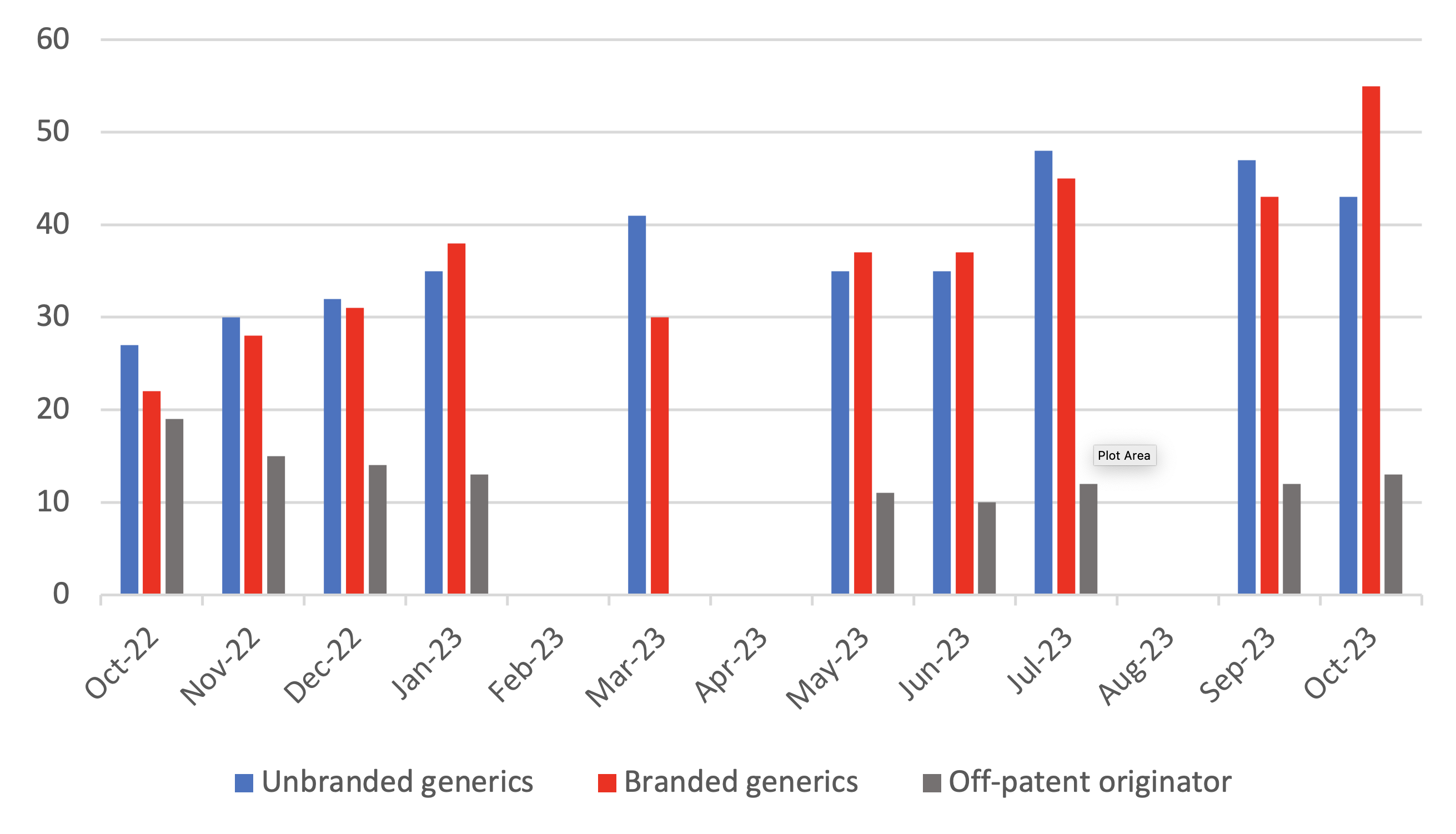 Percentage of branded generics[8]as a proportion of the off-patent medicines experiencing a supply issue in October 2023